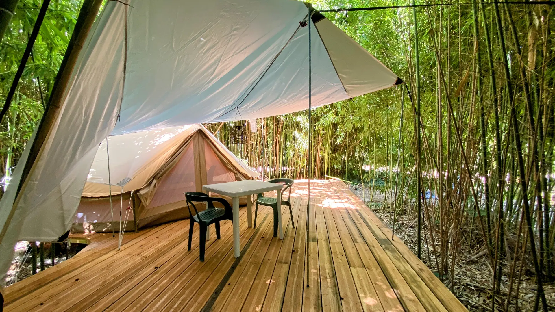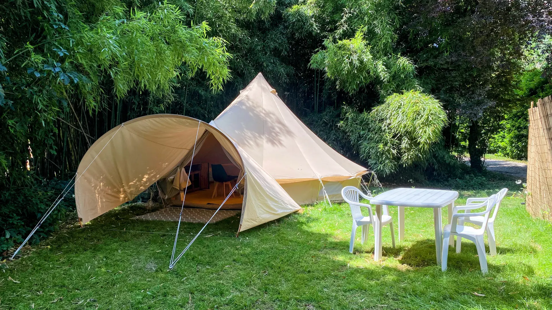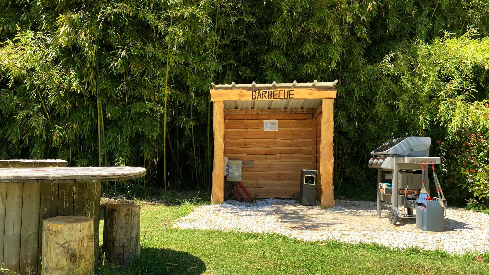 Petit camping ombragé, propice à un séjour tranquille et reposant. Ambiance familiale parmi les bambous et les écureuils, en tente, mobil home, caravane, ou camping-car.