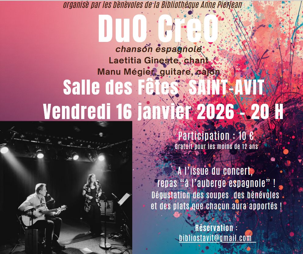 A l'issue du concert, repas " à l'auberge espagnole", dégustation de soupes des bénévoles et des plats que chacun aura apporté.