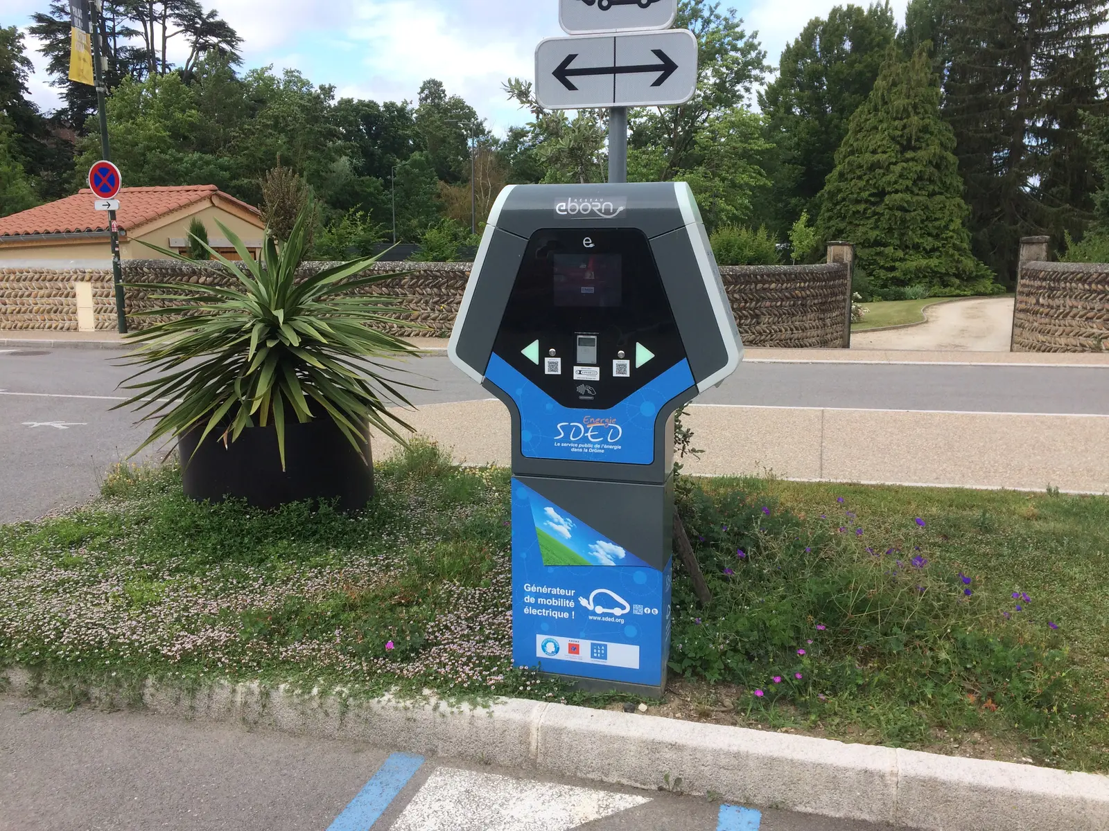 Modèle de borne accélérée et normale. 22kwh. Inscription et demande de carte d’accès (10€) sur www.sded.org