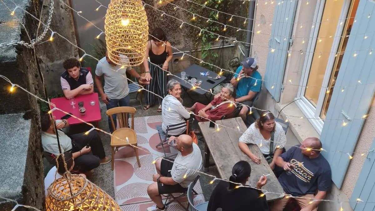 Nouveauté en 2026, le coté cour, espace pour prendre le temps de boire une bière bouteille ou une pression ainsi que du vins et des produits sans alcool