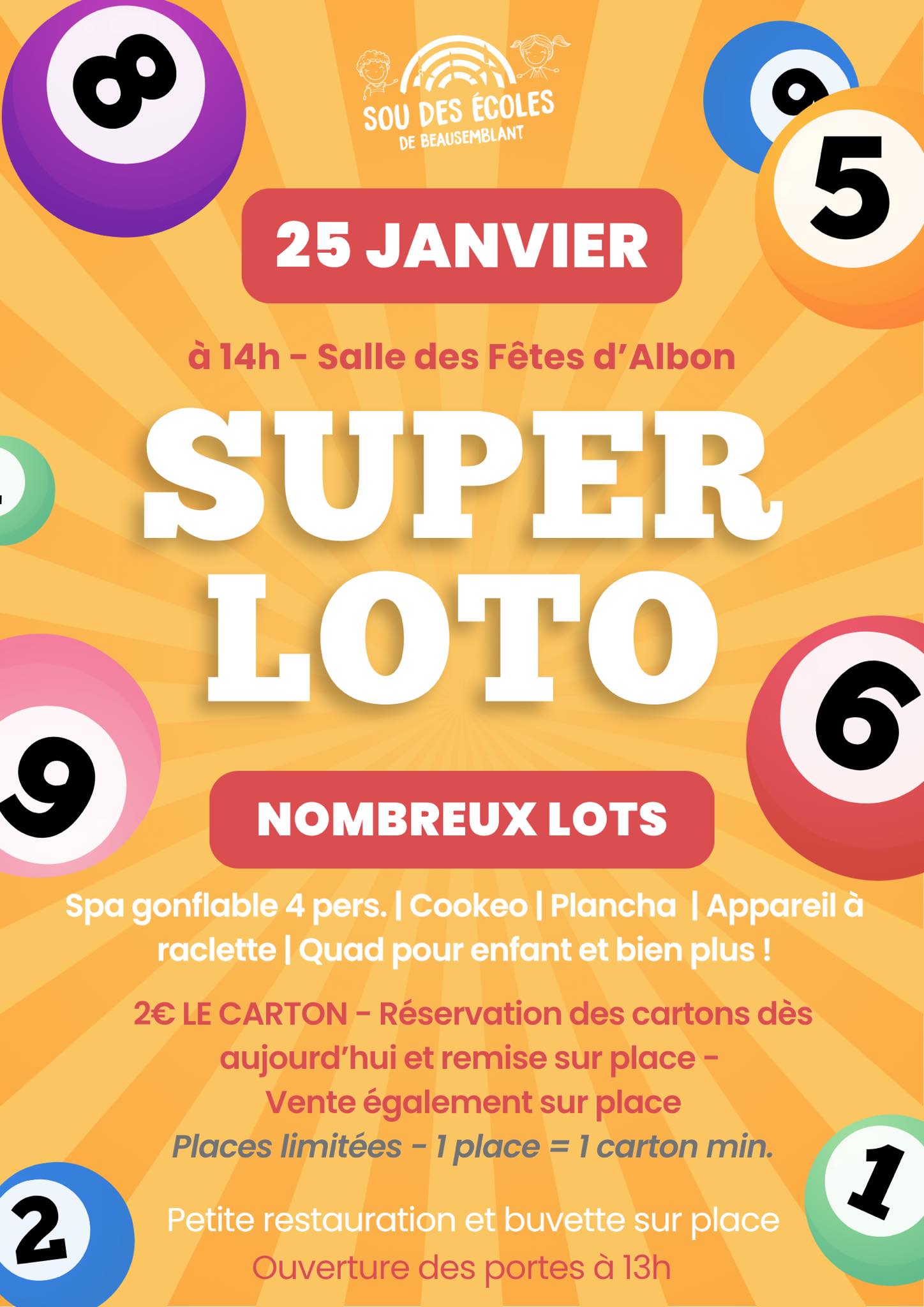 Petite restauration et buvette sur place;