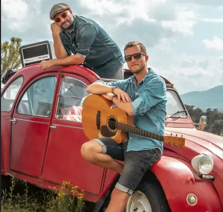 Le duo Emilien et Vince reprennent des chansons françaises en invitant le public à participer.