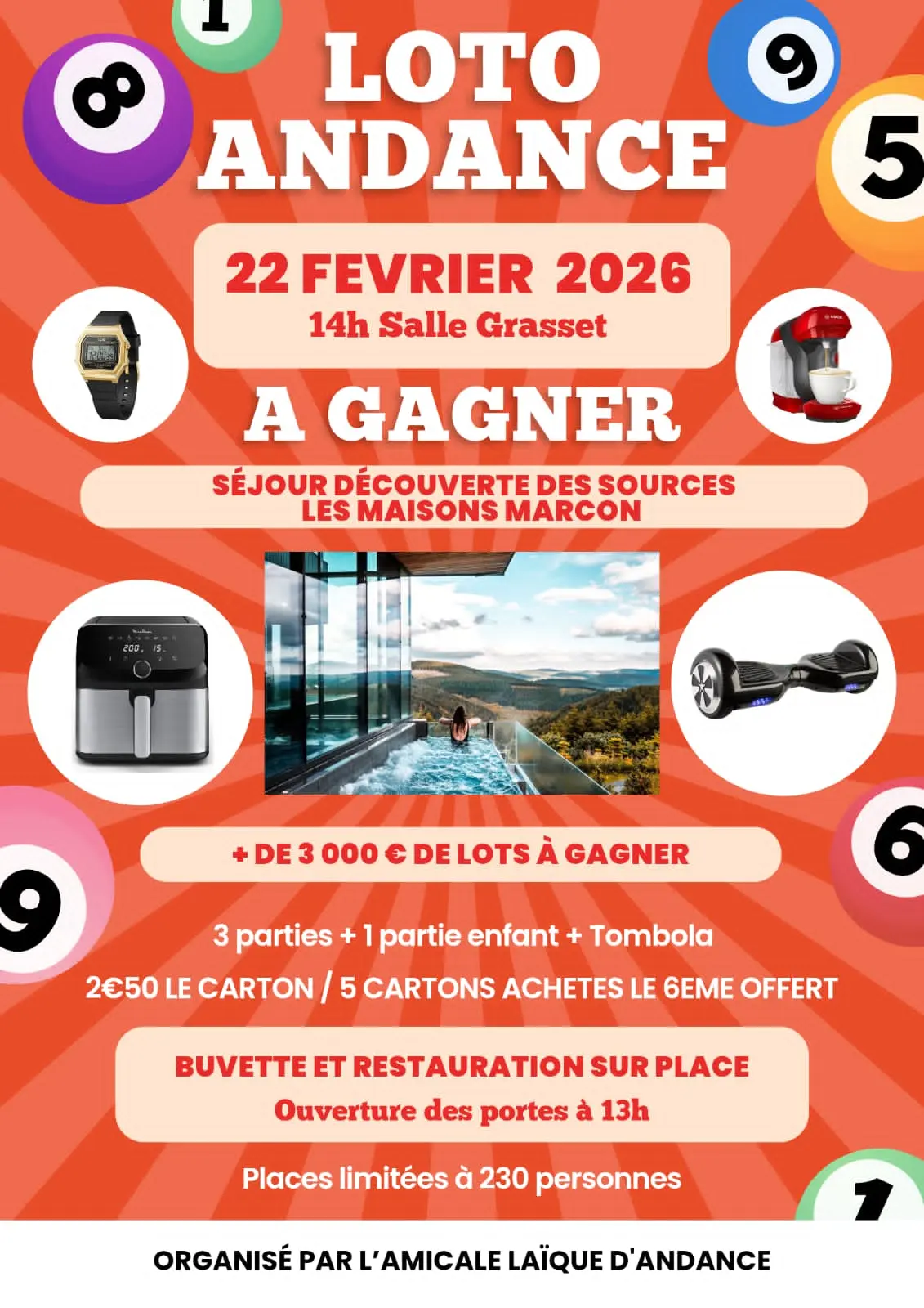 Loto organisé par l'Amicale Laïque d'Andance pour les enfants de l'école publique Alysson du Rhône.